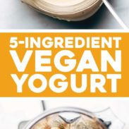 This Creamy Dreamy Vegan “Yogurt” is the BEST! Made in five minutes with three ingredients and naturally sweetened.