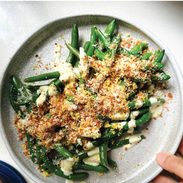 Grab a bag of green beans, blitz up a quick avocado caesar, toast some panko, and let’s go! This is some type of magic.
