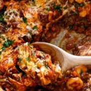 This Baked Tortellini with a sausagey tomato sauce is pretty basic but it’s ohhhh so good. It’s my comfort food weakness right now. Highly recommend dunking in there with some buttery garlic bread!
