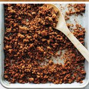 This vegetarian taco meat is made with cauliflower, walnuts, and chipotle peppers. It’s so easy: just mix and bake. Meatless miracle!