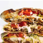 Keep your filling amounts minimal. It is very common to run into the issue of overflow, in which case, you can a) reduce filling amounts, b) fold it up as-is and hope for the best – I found even half-closed crunchwraps still grilled up nicely, c) break your tostadas into smaller pieces to allow you more space, or d) make a MEGA CRUNCHWRAP. See next FAQ.