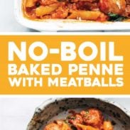 Let me tell you the tale of the no-boil, fail-proof, garlic-buttery, dreamy baked penne with meatballs.