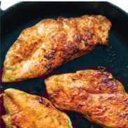 Bake chicken for about 8-10 minutes or until the internal temperature is 165°F on an instant read thermometer. Loosely tent with foil and allow to rest for about 10 minutes before slicing and serving. Sautéed chicken is golden brown on the outside and juicy on the inside. Experiment with different seasoning blends and pair with your favorite side dishes for an easy, but incredible weeknight dinner!