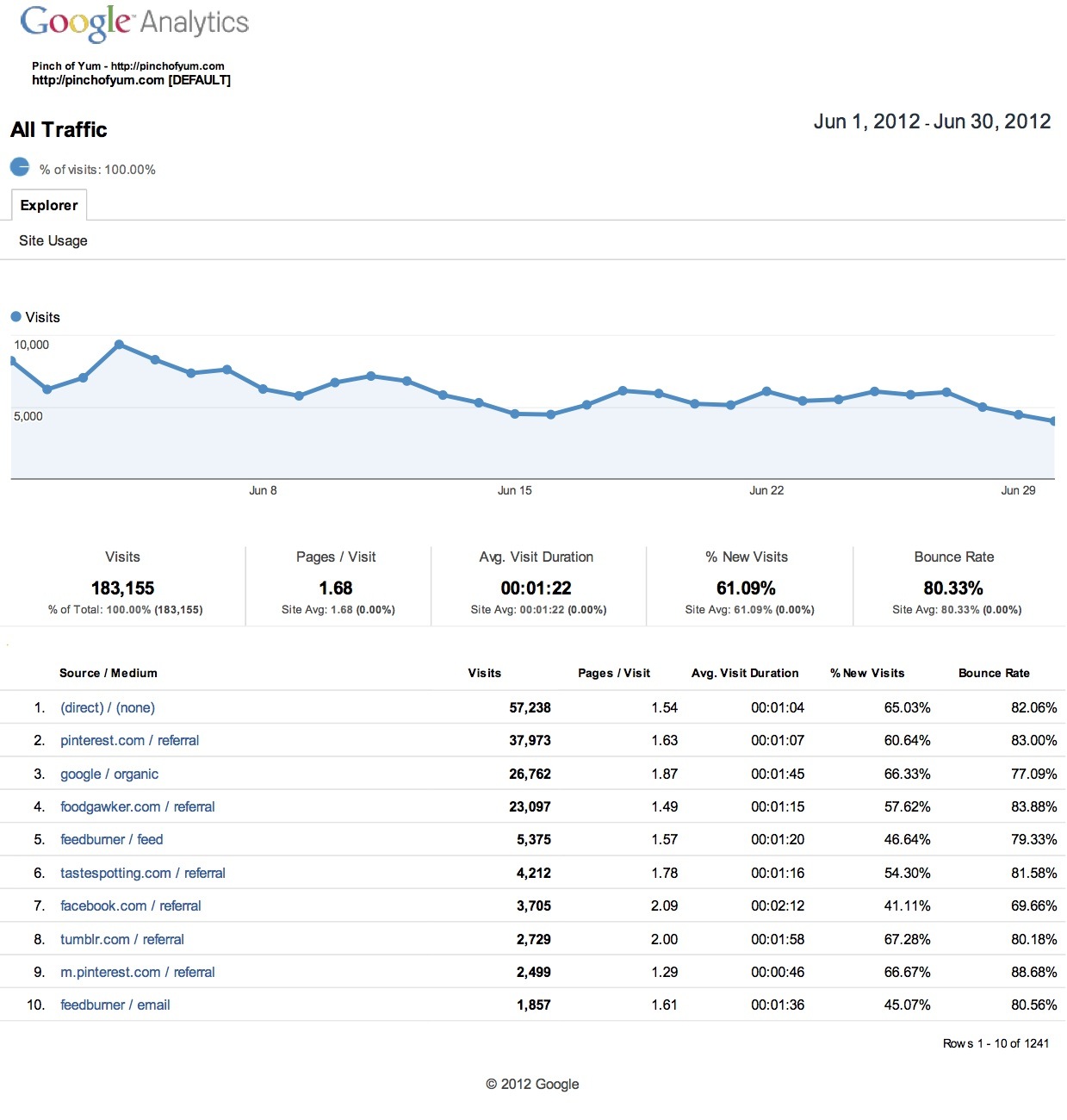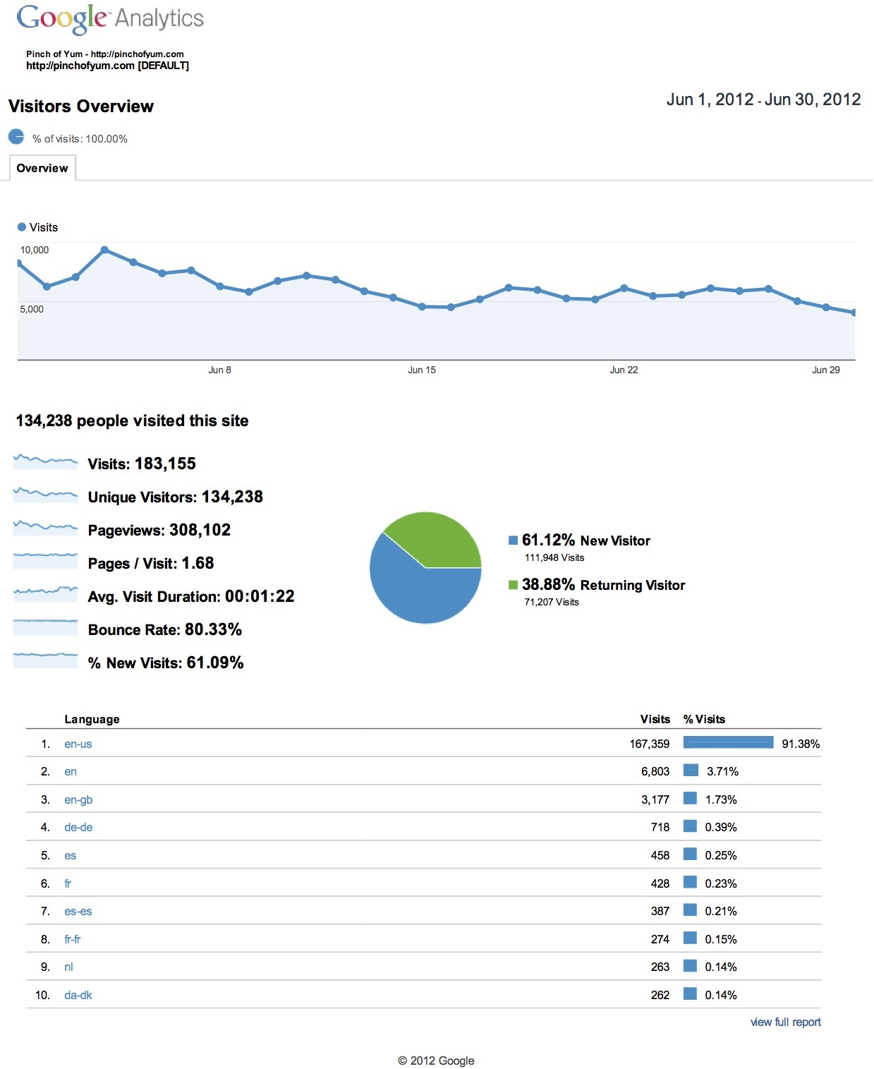 If you’re new to Pinch of Yum, here’s a quick overview of what this post is all about. Every month I put together a post outlining the income we earned from Pinch of Yum, the type of traffic the blog is receiving, and any tips or tricks we’ve learned that might be helpful. Our hope is that these posts can help you with your blog in some way or another.