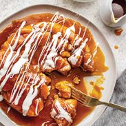 I usually save about 1/2 cup of the caramel for drizzling and dipping after it comes out of the oven.