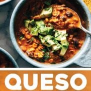 Queso Chicken Chili! Creamy, spicy, and so easy. Made with roasted corn, jalapeño, and creamy Pepper Jack cheese. Super easy dinner!