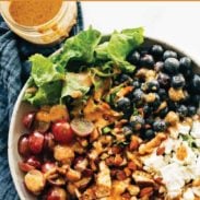 I use a lot of your recipes, and they are always delicious. This, however, is one of my all time favorites! We are vegetarian, so I use chickpeas instead of chicken, seasoned up just the same but also add a little cayenne, and add shredded carrot to the salad. Amazing! I can’t get enough of the dressing!!!