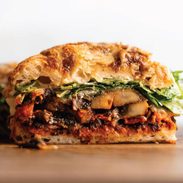 Made this dish tonight. It comes together easily and most of the time spent was hands-off, a huge bonus. To add a little protein, I sliced a block of tofu into strips and seasoned with cajun seasoning, then roasted it with the mushrooms. I didn’t use the suggested pesto rosso or fancy foccaccia (just our regular bread), but felt the sandwich worked fine without both. Very enjoyable, and something we will make again.