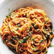 This low-key puttanesca is a marriage of steamy, sticky noodles, and a silky, olive-oil-heavy, garlicky sauce made with loads of fresh vegetables (yes, vegetables). A knob of butter gets melted into the noodles / sauce to turn up the sauciness, and then, for its final act, the whole thing gets jazzed up with lemon and capers and maybe olives, if you like. It can be topped with some fresh parsley, but also, a little more lemon, salt, and pepper because no, sorry, we don’t quit.