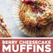 Sending triple berry cheesecake muffins vibes into your consciousness now. I’ll say again: juicy, streusely, cheesecakey, and delicious.
