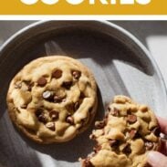 Just two chocolate chip cookies – lightly crisp around the edge, and dense and buttery through the middle. They are thick enough to sink your teeth into and just really, really good.